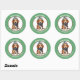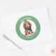 L'image d'un adorable petit chiot Beagle brun et blanc portant son écharpe d'hiver et son casquette est au centre de cet autocollant de vacances. L'image est encadrée dans une bordure circulaire verte qui contient votre texte personnalisé en blanc. Idéal pour les cartes de Noël, la correspondance et les forfaits cadeaux.