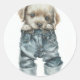 Ajoutez de la délicatesse à votre artisanat, à vos fournitures de fête et à votre emballage cadeau avec ce Chiot dans Jeans art classique collant rond.