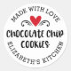 Un autocollant rustique personnalisé "fait avec amour" sur un arrière - plan blanc. Pour décorer votre cadeau de biscuits au chocolat. Faites-le le vôtre en ajoutant votre propre nom. Une jolie touche de finition pour votre cadeau de biscuit à puce chocolat. Conçu pour vous par Blackberry Boulevard.
