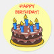 Chocolat amusant Gâteau d'anniversaire heureux Sticker d'anniversaire. L'écriture peut être personnalisée. Comprend un gâteau d'anniversaire en chocolat à caricature, avec des bougies bleues éclairées et de la glace. Sur un arrière - plan jaune. PERSONNALISER - acheter tel quel ou modifier le libellé. Pour modifier la couleur de l'arrière - plan, sélectionnez personnaliser, utilisez le bouton Modifier et sélectionnez Arrière - plan.