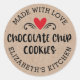Un autocollant rustique personnalisé "fait avec amour" sur un arrière - plan de couleur kraft. Pour décorer votre cadeau de biscuits au chocolat. Faites-le le vôtre en ajoutant votre propre nom. Une jolie touche de finition pour votre cadeau de biscuit à puce chocolat. Conçu pour vous par Blackberry Boulevard.