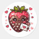 Un mignon autocollant d'une fraise couverte de chocolat tenant une lettre de Saint Valentin
