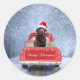 Sticker Rond Chocolat Labrador Chien dans la voiture de Noël de
