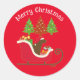 Chocolat Labrador Silhouette de Noël Sticker rouge classique rond. Labrador au chocolat assis sur Père Noël Sleigh dans la forêt. Créé par Naomi Ochiai.