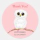 Sticker Rond Chouette blanche mignonne sur rose clair merci