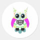 Sticker Rond Chouette blanche multi-rose crâne sucre