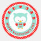 Sticker Rond Chouette Bleue et Coeurs Saint Valentin