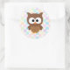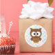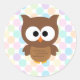 Cette chouette chouette brune aux yeux mignons vous regarde joyeusement comme il vous invitation à une fête ou décore votre ensemble de fête. L'arrière - plan des pois pastel le distingue vivement. Les enfants vont adorer ce mignon hibou caricaturiste !
