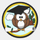 Sticker Rond Chouette de graduation en dessin mignonne avec Cas