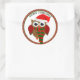 Sticker Rond Chouette du Père Noël avec foulard rouge et blanc