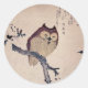Reproduction d'un vieux bloc de bois japonais imprimé d'une jolie chouette "souriante" assise sur une branche. L'image vintage a été soigneusement sélectionnée, corrigée des couleurs, nettoyée par points, retouchée, recadrée et préparée pour l'impression de la plus haute qualité.