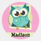 Sticker Rond Chouette verte sur bandes rose et blanche