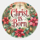 Sticker Rond Christ Est Né Noël Poinsettia Religieux