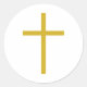 Croix d'or sur un autocollant blanc rond. Parfait pour toute église, école du dimanche ou occasion chrétienne !