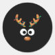 Sticker Rond Christmas Cute Reindeer Face Antlers Wrapped In Li