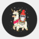Sticker Rond Christmas Gnome On Llama, Cute Alpaca Chanukah Chr