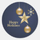 Sticker Rond Christmas Party Golden Ornament Navy Blue Elegant