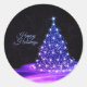 Sticker Rond Christmas Party Pink Blue Tree Winter Black Rustic