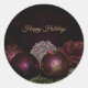 Sticker Rond Christmas Party Pink Ornament Green Leaves Black