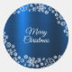 Sticker Rond Christmas Party White Snowflakes Nave Blue