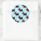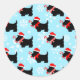 Adorable, black Scottie dogs with snowflakes makes a cute Christmas patterned sticker! They're wearing red Santa hats, cozy scarves and each dog is carrying a candy cane. The light blue background color is customizable. Choose your favorite color and change the size of the pattern if desired. Decorate Christmas gift wrapping, cards and more with this festive design that's perfect for Scottish Terrier lovers!