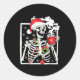 Sticker Rond Christmas Skeleton With Smiling Skull Drinking Cof
