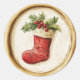Sticker Rond Christmas Stocking Holly Faux Wax