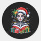 Sticker Rond Christmas Sugar Skull Art Woman Santa Hat Festive