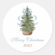 Sticker Rond Christmas Tree Preppy Bow Blue Christmas