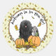 Sticker Rond Chute Puli Chien (noir) Citrouille Feuille mignon