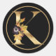 STICKER ROND CHUTE THÈME OR MONOGRAM K AVEC ARRANGEMENT FLORAL