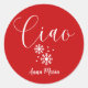 Sticker Rond Ciao Noël personnalisé rouge et blanc