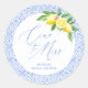 Ciao to Miss Lemon Italian Blue Tile Bridal Shower Classic Round Sticker