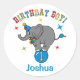 Célébrez le premier anniversaire du bébé avec ce design de cirque mignon et coloré avec un joyeux éléphant de bande dessinée équilibrant sur une boule qui a un grand numéro dessus. Texte dit GARÇON D'ANNIVERSAIRE. Sur T-shirts, magnets, boutons, autocollants, tasses et plus encore, personnalisables pour bébé et enfant ! PinkInkArt original !