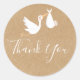 Merci autocollant rond classique, représentant une cigogne mignonne portant une livraison très spéciale, avec un beau texte de remerciement en écriture blanche, sur un fond kraft rustique, cet autocollant pour baby shower/sprinkle est parfait pour une baby shower/sprinkle spéciale. Conçu pour coordonner avec notre collection baby shower/sprinkle Livraison Spéciale.