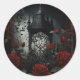 Sticker Rond Cimetière gothique Jardin Rose avec Rouge et Noir