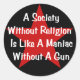 Un texte dit : "Une société sans religion est comme un maniaque sans arme." C'est génial à porter quand vous devez être autour des cultes ou les saluer à la porte quand ils viennent poussant leur religion.