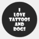 Sticker Rond Citation de tatouage de chien chiot drôle Annivers