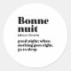 Bonne Nuit. Bonne Nuit. Inspirationnel et motivant design de citations françaises pour ceux qui aiment la belle et romantique langue française. Marchandises de style de définition de dictionnaire cool mêlées avec sarcasme et humour léger. Qui dit que vous ne pouvez pas être drôle, chic et cool tout en inspirant les autres avec ces mots perspicaces et des paroles de vie. Grand souvenir, cadeau de Noël et cadeau d'anniversaire pour ceux qui rêvent de se rendre à Paris et tombent amoureux de la Tour Eiffel.