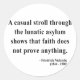 "Une balade décontractée à travers l'asile lunatique montre que la foi ne prouve rien." - Friedrich Nietzsche