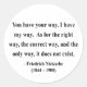 "Vous avez votre chemin. J'ai mon chemin. Quant à la bonne voie, la bonne voie, et la seule voie, elle n'existe pas." - Friedrich Nietzsche