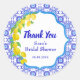 Nos autocollants ronds de remerciement pour la douche nuptiale présentent de superbes illustrations à l'aquarelle de vignes de citronniers sur un fond de carreaux de la côte italienne d'Amalfi qui peuvent être placés sur divers objets tels que des sacs de faveur, des sacs-cadeaux, des enveloppes, des cartes de remerciement ou même au dos des faveurs ou des cadeaux eux-mêmes. Vous pouvez également les utiliser pour décorer le papier d'emballage ou les boîtes des cadeaux. Les possibilités sont infinies !