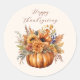 Sticker Rond Citrouille avec Bon thanksgiving à fleurs