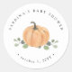 Ce design comprend un citrouille aquarelle sur un lit de feuilles d'eucalyptus et les détails de votre douche à côté. Cet autocollant citrouille d'aquarelle mignon est un excellent complément à vos évènements d'automne et un complément parfait à notre suite d'invitation d'aquarelle d'automne A Little Citrouille est sur le chemin. Elles sont parfaites pour les fêtes d'hôtes ! Contactez-nous à threebusybirds@gmail.com pour une personnalisation supplémentaire.