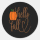 Sticker Rond citrouille drôle visage Halloween Bonjour Automne