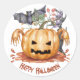 Sticker Rond Citrouille et chauve-souris à l'aquarelle, Hallowe