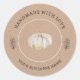 Autocollant rond rustique représentant une citrouille blanche peinte à la main sur fond de papier kraft. Parfait pour les petites entreprises, l'emballage de produits faits main ou les cadeaux saisonniers. Le texte "Fabriqué avec amour" ajoute une touche personnelle, tandis que les champs personnalisables vous permettent d'ajouter le nom de votre entreprise. Idéal pour l'automne, Thanksgiving et l'image de marque artisanale.