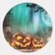 Sticker Rond Citrouilles d'Halloween et chauves-souris lancent