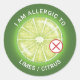 Diffusez la sensibilisation à l'allergie à la chaux ou aux agrumes d'une personne à l'aide de cette conception qui présente l'illustration de Destei d'un agrumes de chaux coupé en deux montrant l'intérieur du fruit. Sur le côté de la chaux il y a un petit symbole X rouge à l'intérieur d'un cercle blanc qui a une bordure rouge. Il y a aussi deux zones de texte personnalisables. L'exemple de texte préfabriqué dit : "Je suis allergique aux citrus / citrus".