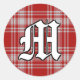 Sticker Rond Clan classique Menzies Rouge et blanc Tartan Monog